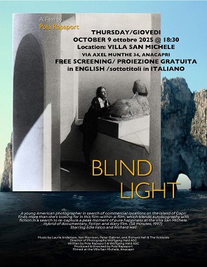Villa San Michele’s cultural season in Anacapri continues.On Thursday, 9 October at 6:30 pm, in the historic chapel of the house-museum that belonged to physician and writer Axel Munthe, the film “Blind Light” by Pola Rapaport will be screened.